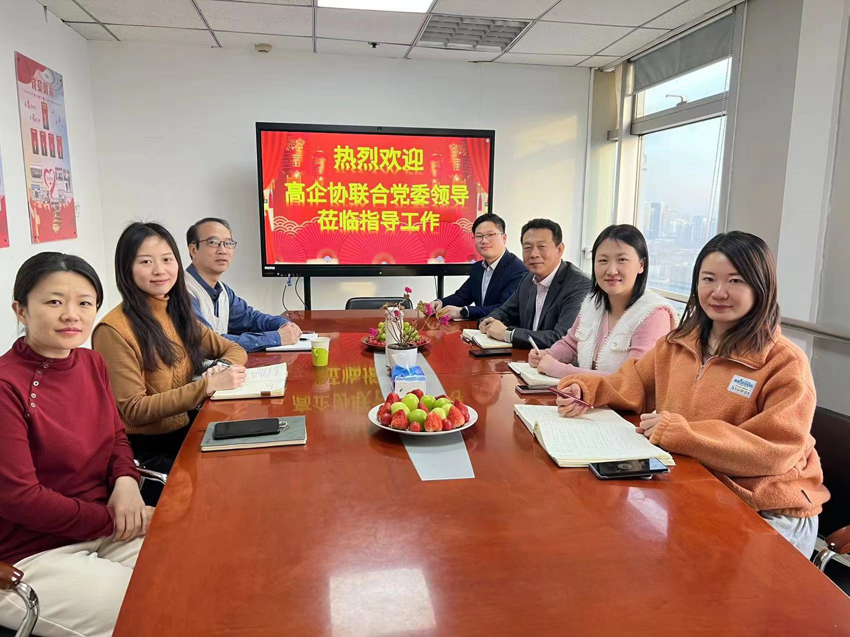 配圖:高企協(xié)聯(lián)合黨委領(lǐng)導(dǎo)臨派特生物,雙方進(jìn)行座談交流