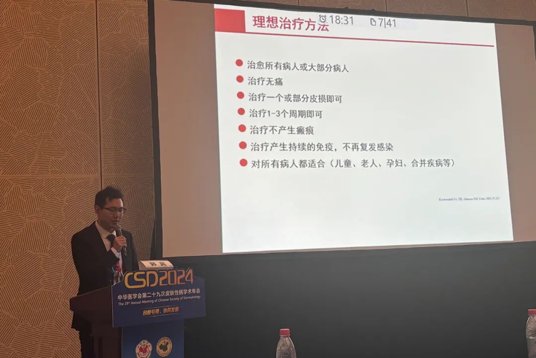 1. 病毒疣理想治療方法:治愈所有病人或大部份病人、無痛、治療一個(gè)或部分皮損即可、不產(chǎn)生瘢痕、產(chǎn)生持續(xù)的免疫,不再復(fù)發(fā)感染、對所有病人都適合等;