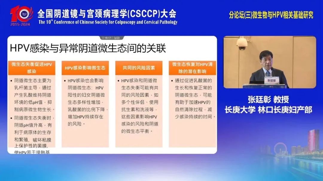 長庚大學醫(yī)學院張廷彰教授分享了《陰道微生態(tài)與HPV持續(xù)感染的相關性》