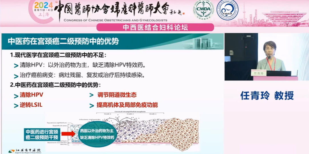 江蘇省中醫(yī)院任青玲教授就《中西醫(yī)結(jié)合宮頸癌防治一體化平臺(tái)建設(shè)》為題進(jìn)行報(bào)告: