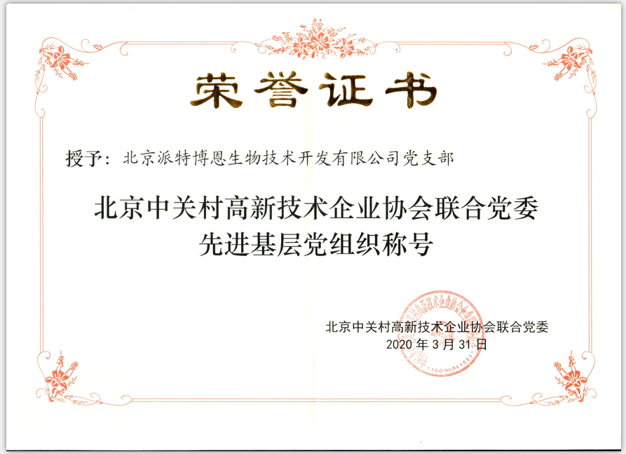 派特公司黨支部自2019年4月15日成立以來,在上級(jí)黨組織的領(lǐng)導(dǎo)下,在派特公司總部領(lǐng)導(dǎo)的大力支持下,積極有序地開展了各項(xiàng)黨員活動(dòng)。 派特公司黨支部榮獲“北京中關(guān)村高新技術(shù)企業(yè)協(xié)會(huì)聯(lián)合黨委先進(jìn)基層黨組織稱號(hào)”。