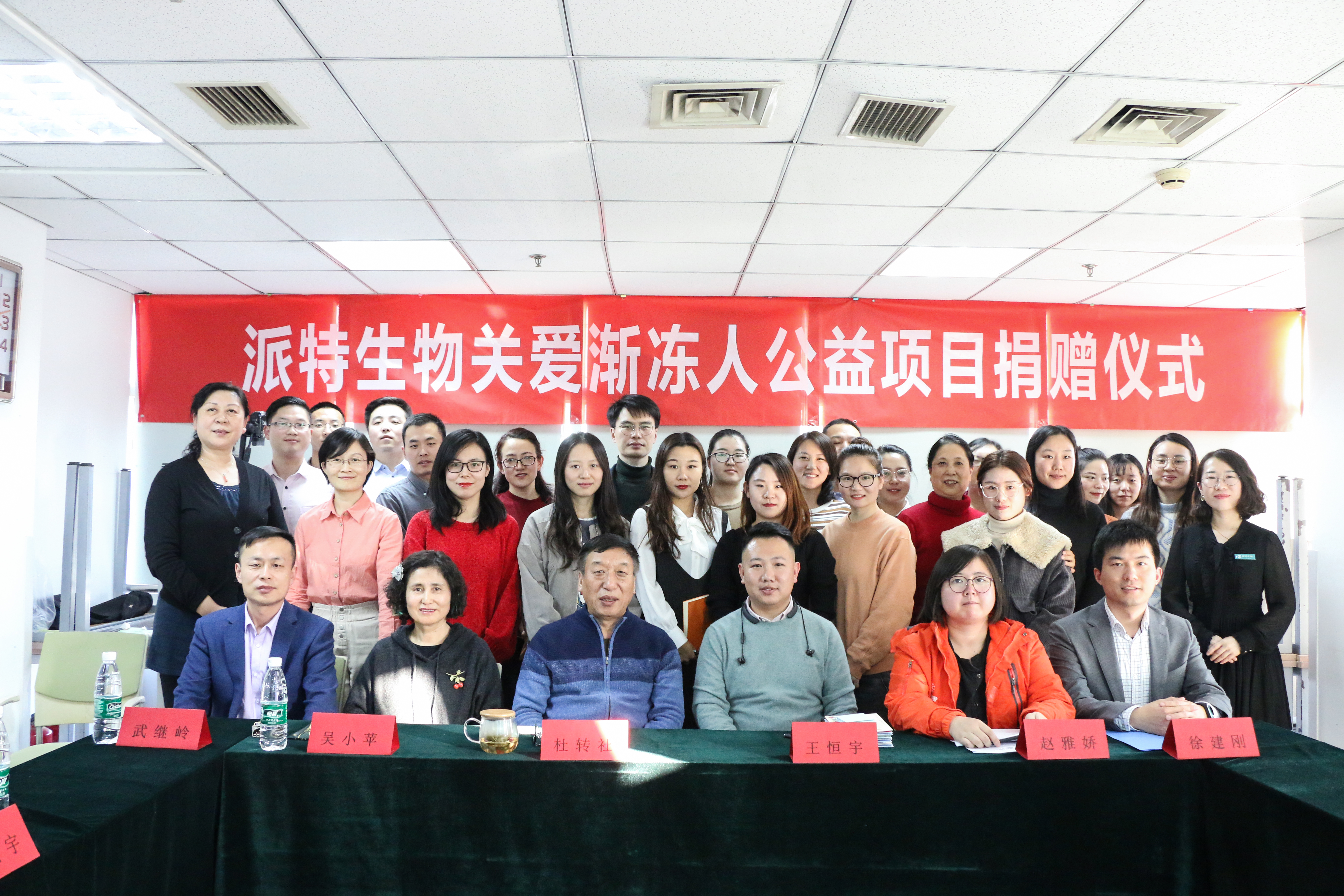 2019年12月26日,派特公司關(guān)愛漸凍人公益項目捐贈儀式在派特公司總部順利舉行。 蒲公英漸凍人罕見病關(guān)愛中心副理事長王恒宇,關(guān)愛漸凍人公益項目項目主任趙雅嬌,法務(wù)理事徐建剛等作為受捐方代表出席捐贈儀式。派特公司總經(jīng)理杜轉(zhuǎn)社,副總經(jīng)理吳小蘋,副總經(jīng)理武繼嶺,品牌管理總監(jiān)陳飛宇,辦公室主任、人力資源部經(jīng)理姚軍,及二十余位派特員工代表出席捐贈儀式。