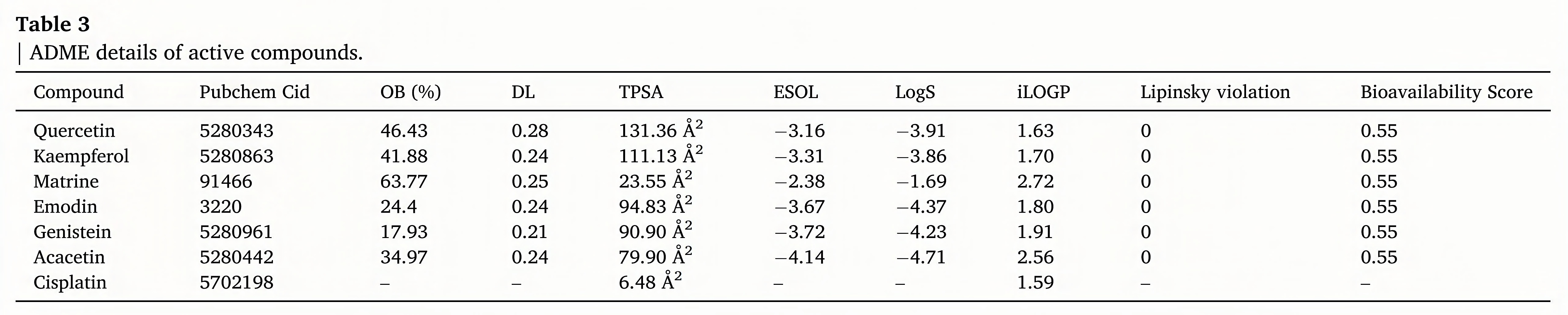 The targets of potential active ingredients within PTL were obtained from the YaTCM database (http://cadd.pharmacy.nankai.edu.cn/ya tcm/home) (Chong et al., 2018), TCMSP database (https://tcmsp-e. com/) (Ru et al., 2014) and ChEMBL database (https://www.ebi.ac. uk/chembl/) (Mendez et al., 2019). The ADME details of active key compounds in PTL were obtained from the Swiss ADME database (http://www.swissadme.ch/index.php).