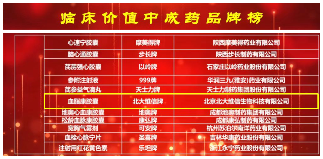 2021年12月18日,中國中藥協(xié)會在京發(fā)布“2021中國中藥品牌”。“北大維信”品牌入選“2021臨床價值中成藥品牌榜”。此次入圍中成藥品種共138個,涵蓋心血管、腦病、內分泌等20個優(yōu)勢疾病領域。